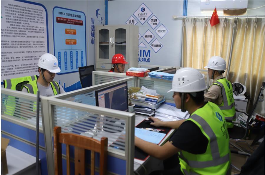 面對施工難度大、建筑形態(tài)復(fù)雜、圖紙變更頻繁、工期緊、任務(wù)重等重重考驗,項目部攻堅克難,認(rèn)真組織研究施工方案,制定施工對策,成立了多個項目推進(jìn)工作組,抽調(diào)精英強(qiáng)將到項目協(xié)助指導(dǎo)工作。項目部科學(xué)組織調(diào)度,統(tǒng)籌調(diào)配資源,采取“5+2”“白加黑”的搶工模式,確保人力不停歇、物力不間斷。項目部還成立了突擊先鋒隊,做到“哪里有責(zé)任,哪里就有黨員,哪里就有團(tuán)員青年”,真正發(fā)揮突擊隊在項目推進(jìn)中的先鋒模范作用。項目部負(fù)責(zé)人率先垂范,靠前指揮,多次深入施工現(xiàn)場指導(dǎo)并召開協(xié)調(diào)推進(jìn)會,為項目化解難點、堵點。項目部全體人員明確目標(biāo),上下一心,深入攻堅,搶抓時間節(jié)點,竭盡全力打好這場“攻堅戰(zhàn)”。