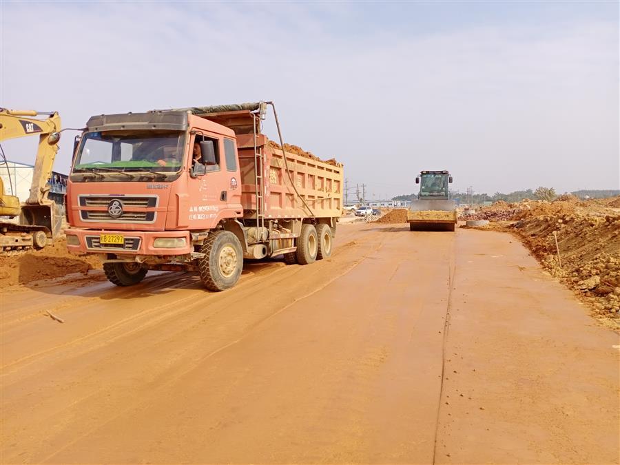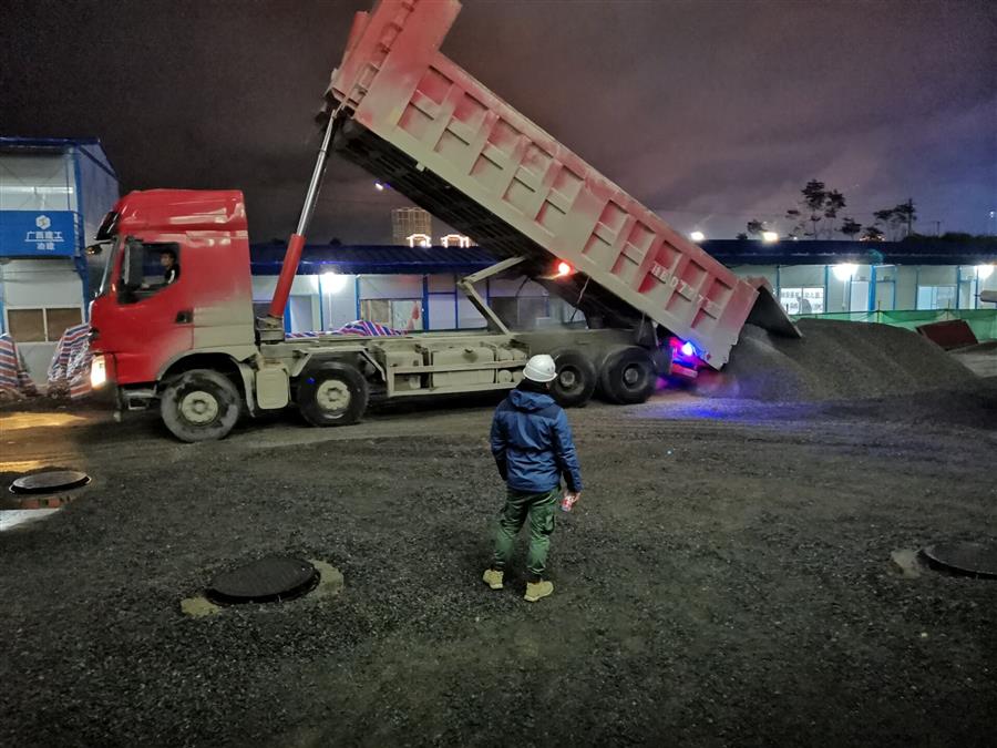 為全力沖刺四季度,項目部實行“快馬加鞭、保質(zhì)保量、人停機不停、晝夜料不停!”的搶工模式,在保證安全和質(zhì)量的前提下,項目部全體成員搶抓施工黃金期,全力以赴推進項目建設(shè)。為加快項目建設(shè),項目部反復(fù)討論研究制定了科學(xué)的施工計劃,合理安排人力物力。面對晚間要拉運回填土方和石料的問題,項目部采取人員輪流值班,料來人在,統(tǒng)一指揮的措施,做到合理配置堆放,減少二次運輸,提高工作效率。