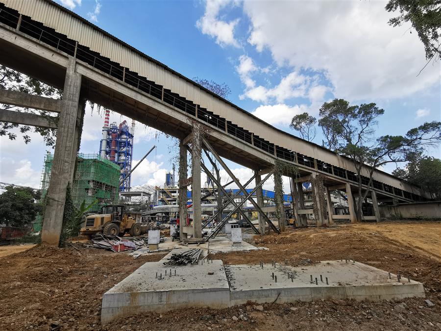 251砂巖長(zhǎng)皮帶機(jī)輸送廊是魚峰水泥廠唯一一條進(jìn)砂巖破碎料的輸送鏈,是廠內(nèi)生產(chǎn)原料的臍帶。本次接駁任務(wù),業(yè)主要求在七天時(shí)間內(nèi)完成拆除重建工作,是歷次接駁工作中工期最緊、任務(wù)最重的一次接駁工作,各項(xiàng)專業(yè)工作必須需銜接緊密,環(huán)環(huán)相扣。同時(shí),需拆除的八跨斜廊道均為預(yù)制梁板結(jié)構(gòu),高度大,拆除環(huán)境復(fù)雜,廊道下方有已完工的設(shè)備基礎(chǔ)、正在運(yùn)行的皮帶機(jī)輸送廊及高壓電纜溝需要進(jìn)行保護(hù),施工風(fēng)險(xiǎn)高、難度大。