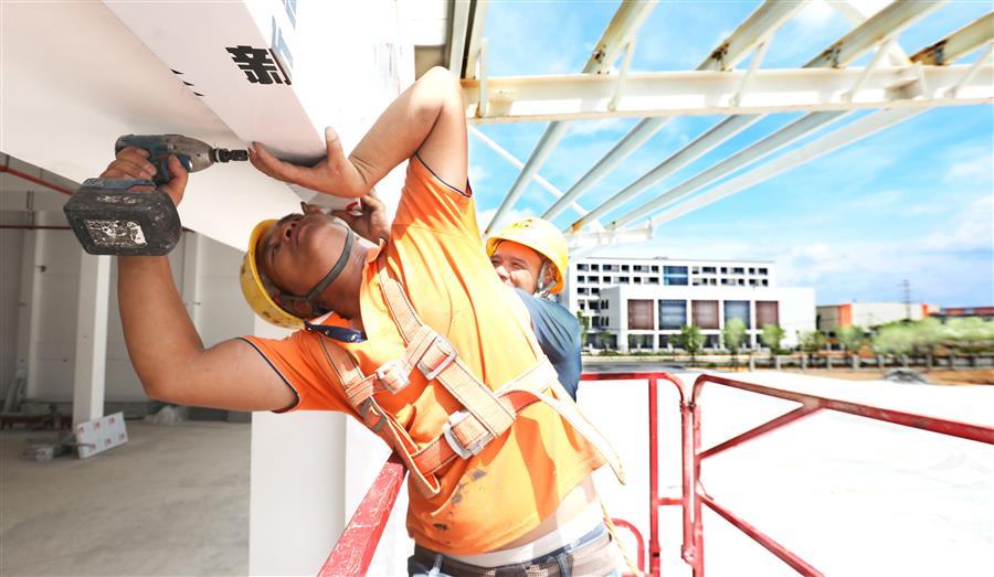 炎炎夏日,擋不住項目推進的步伐。7月20日,由冶建公司承建的柳州鐵路港核心區(qū)(西鵝鐵路物流中心)倉儲配一體庫項目施工現(xiàn)場,皮膚黝黑的覃五偉在工友的配合下,迅速而準確地把一塊塊外立面板材安裝到位,與此同時在該項目現(xiàn)場、不同作業(yè)崗位上的,還有幾十名工人,正在揮汗如雨地工作,大家克服困難、齊心協(xié)力施工,就是為了盡快完成項目的收尾工作,早日交付。