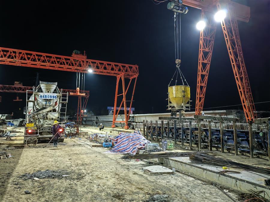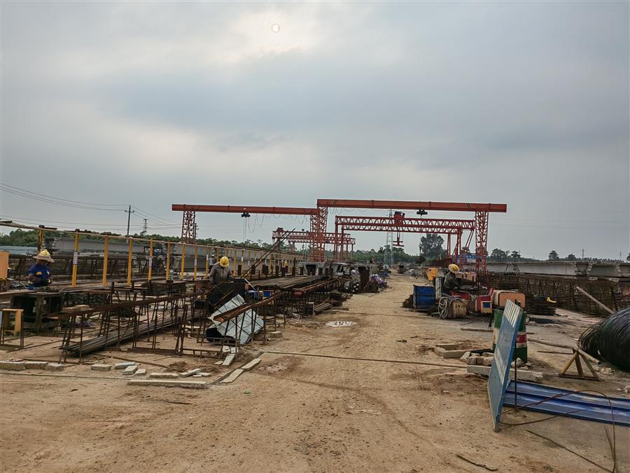 在施工現(xiàn)場(chǎng),20多臺(tái)大型設(shè)備在不同時(shí)段連續(xù)配合作業(yè),運(yùn)輸車(chē)輛有序進(jìn)行運(yùn)土填筑路基、材料進(jìn)出場(chǎng),100多名項(xiàng)目管理人員及工人分為預(yù)制梁場(chǎng)、樁基施工、橋梁下部結(jié)構(gòu)等班組全線鋪開(kāi),在各個(gè)作業(yè)點(diǎn)上有條不紊地開(kāi)展施工作業(yè)。