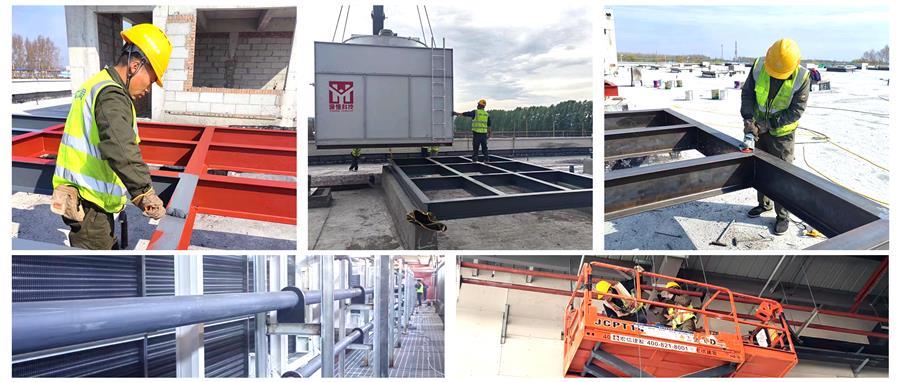 冷風(fēng)機設(shè)備入場后,項目部立即有序開展焊接吊風(fēng)機平臺工作,完成平臺焊接后,項目部合理安排進度計劃,實施進度管理。經(jīng)過項目部全體人員的連續(xù)奮戰(zhàn),項目4號庫12臺冷風(fēng)機已順利安裝到位,管道安裝完成80%;1號庫完成4臺蒸發(fā)式冷凝器安裝工作,下一步進行管道安裝。