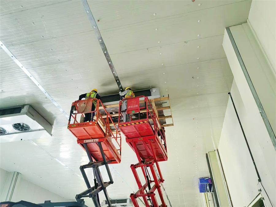 為做好施工現(xiàn)場管理工作,項目部緊扣時間節(jié)點,科學(xué)優(yōu)化施工方案,確保每一項施工點都有人負(fù)責(zé)、有人監(jiān)督,全方位排查施工各環(huán)節(jié)安全情況,嚴(yán)格落實各項管控措施,根據(jù)施工進(jìn)度及時總結(jié)和部署作業(yè)事項,確保安裝工程安全高效進(jìn)行。目前,項目1#玉米加工車間屋面蒸發(fā)冷設(shè)備安裝完成,管道安裝完成90%;壓縮機(jī)、桶泵機(jī)組設(shè)備完成安裝,管道安裝完成80%、速凍機(jī)組設(shè)備安裝完成80%。3#機(jī)房壓縮機(jī)、桶泵機(jī)組安裝30%。4#冷鏈配送中心室內(nèi)設(shè)備及管道安裝完成90%,管廊風(fēng)機(jī)安裝完成,管道保溫施工完成90%。
