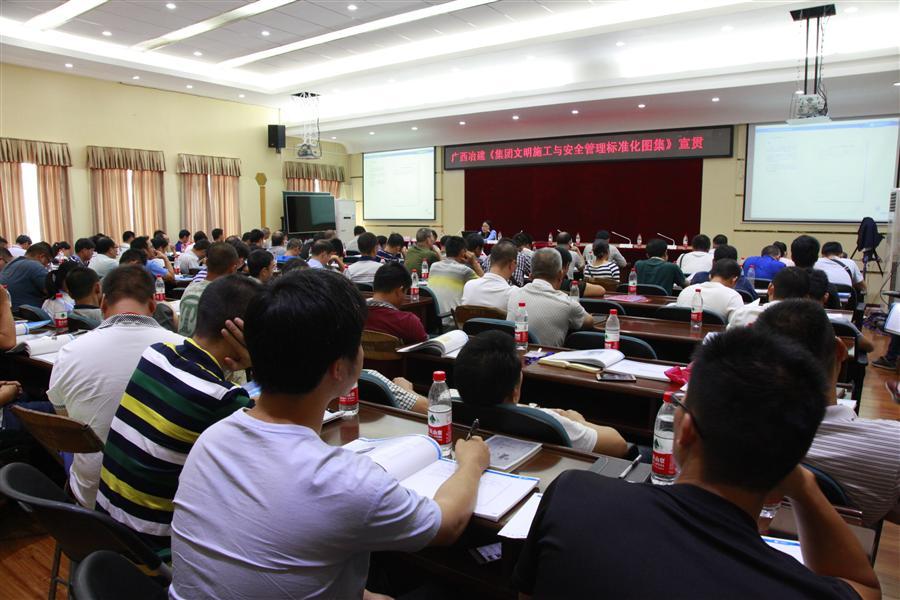 《文明施工與安全管理標(biāo)準(zhǔn)化圖集》為廣西建工集團(tuán)有限責(zé)任公司組織編制,是廣西建工集團(tuán)及所屬各公司共同遵守和執(zhí)行的安全文明施工標(biāo)準(zhǔn),是實(shí)現(xiàn)廣西建工集團(tuán)安全文明標(biāo)準(zhǔn)化生產(chǎn)的重要文件,其內(nèi)容分為五大部分,分別為:安全標(biāo)準(zhǔn)化管理、現(xiàn)場(chǎng)安全文明施工標(biāo)準(zhǔn)做法、安全色與安全文化、信息化管理、綠色施工等,其中包含安全防護(hù)措施和文明施工效果圖、平面圖、大樣圖、做法說(shuō)明,涵蓋了項(xiàng)目組織機(jī)構(gòu)、安全教育、安全檢查、應(yīng)急救援、現(xiàn)場(chǎng)圍墻、大門(mén)做法、場(chǎng)地硬化、腳手架、基坑防護(hù)、高處作業(yè)、模板支架、塔吊、施工升降機(jī)、施工用電、起重吊裝、施工機(jī)具、辦公區(qū)、生活區(qū)設(shè)置、員工工作服、安全帽設(shè)計(jì)等,基本包括項(xiàng)目施工安全文明標(biāo)準(zhǔn)化管理全部?jī)?nèi)容,整個(gè)圖集觀看簡(jiǎn)便、操作方便,適用性強(qiáng)。培訓(xùn)過(guò)程中,蔣小緩副處長(zhǎng)全面詮釋了標(biāo)準(zhǔn)化圖集各分部分項(xiàng)的要求和做法,展示現(xiàn)場(chǎng)實(shí)做正確與錯(cuò)誤的照片,并播放了廣西兆安·現(xiàn)代城安全文明標(biāo)準(zhǔn)化示范工地視頻短片,豐富了培訓(xùn)內(nèi)容,活躍了課堂氣氛,提高了培訓(xùn)質(zhì)量,各參加培訓(xùn)人員認(rèn)真傾聽(tīng),做好筆記,課堂紀(jì)律良好,使培訓(xùn)達(dá)到了應(yīng)有的培訓(xùn)效果。