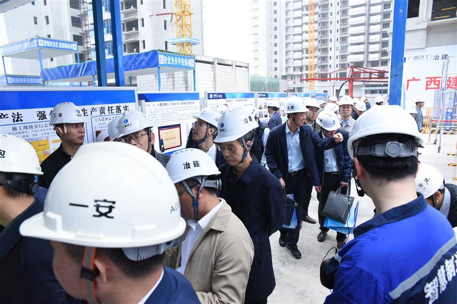 春雨潤(rùn)邕,綠意蔥蘢。4月10日,集團(tuán)公司2023年第二季度安全生產(chǎn)工作會(huì)議暨質(zhì)量安全標(biāo)準(zhǔn)化現(xiàn)場(chǎng)觀摩會(huì),在冶建公司桂鴻分公司施工的北投時(shí)代(二期)項(xiàng)目舉行。集團(tuán)公司總經(jīng)理、黨委副書(shū)記、董事羅濤,副總經(jīng)理陳禮松,總經(jīng)理助理、企業(yè)管理部總經(jīng)理、市場(chǎng)經(jīng)營(yíng)部總經(jīng)理劉新寧,集團(tuán)公司各子公司負(fù)責(zé)人及相關(guān)人員近300人參加了此次觀摩會(huì)。