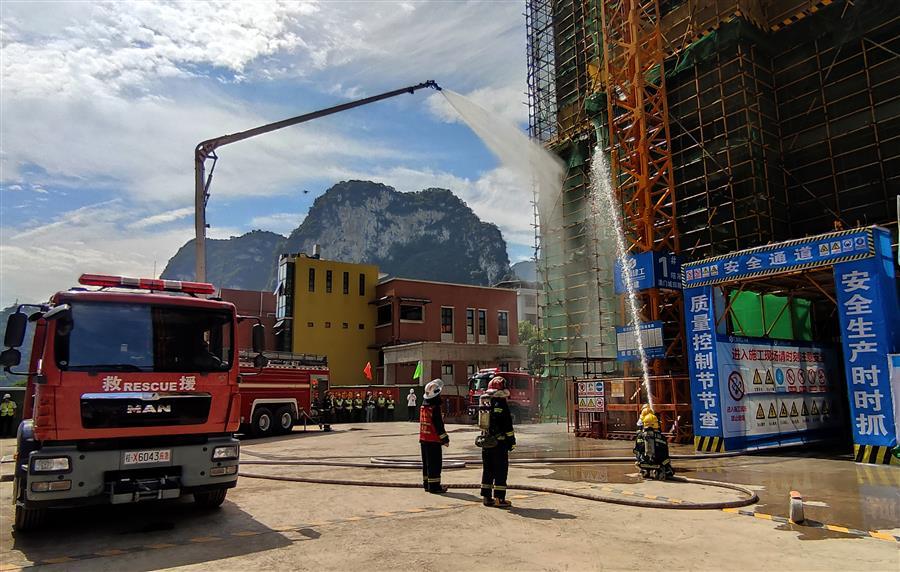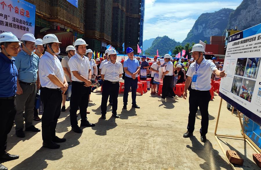 6月14日,河池市2023年“安全生產(chǎn)月”活動啟動儀式暨質(zhì)量安全標(biāo)準(zhǔn)化、消防演練現(xiàn)場觀摩會在冶建公司桂金分公司承建的河池?澳門國際城四期項(xiàng)目部舉辦。河池市住房和城鄉(xiāng)建設(shè)局黨組成員、副局長韋鵬致辭并宣布“安全生產(chǎn)月”活動啟動,冶建公司總經(jīng)理、黨委副書記蒙勝益參加并講話。觀摩會由河池市建設(shè)工程質(zhì)量安全監(jiān)督站副站長覃安納主持。