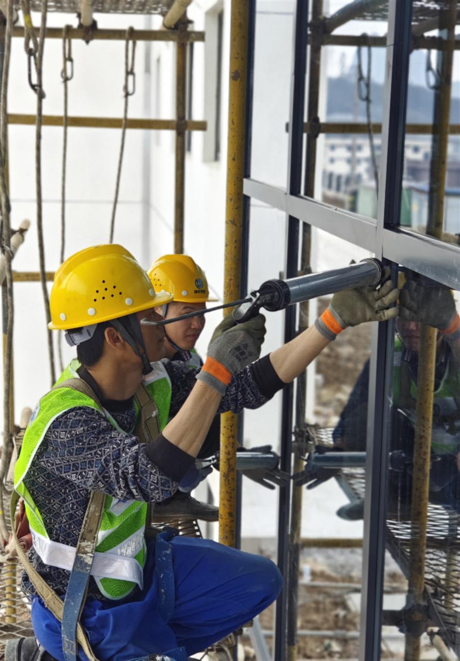 “明德中學(xué)項(xiàng)目正在進(jìn)行宿舍樓外墻涂料和鋁合金窗玻璃膠施工,及綜合體育館和宿舍樓天面打磨等施工;明德小學(xué)項(xiàng)目正在進(jìn)行2#、3#綜合教學(xué)樓主體施工,及午托樓砌筑、綜合體育館網(wǎng)架屋面等施工。”明德中小學(xué)項(xiàng)目管理人員說(shuō)。兩個(gè)學(xué)校項(xiàng)目復(fù)工復(fù)產(chǎn)后,項(xiàng)目人員通力合作、全力以赴,各種施工機(jī)械開(kāi)足馬力、連班作業(yè),保障各項(xiàng)工作有序開(kāi)展,確保學(xué)校民生項(xiàng)目按期交付。