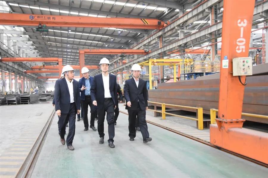 會前,金寧運(yùn)還深入工業(yè)化集團(tuán)柳州裝配式建筑現(xiàn)代化產(chǎn)業(yè)園鋼結(jié)構(gòu)生產(chǎn)車間進(jìn)行實(shí)地調(diào)研。