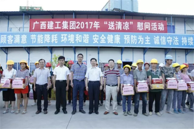 柳州市高新區(qū)科技園專家公寓樓工程由我司桂華分公司承建。8月7日下午,廣西建工集團(tuán)副總經(jīng)理侯立林冒著高溫酷暑,專程從南寧前來(lái)項(xiàng)目建設(shè)現(xiàn)場(chǎng)給一線職工和農(nóng)民工“送清涼”,公司領(lǐng)導(dǎo)歐志永、賴海標(biāo)、廖立波參加活動(dòng)。130多份價(jià)值9000多元的慰問(wèn)品,在十多分鐘的時(shí)間里,全部發(fā)放完畢。